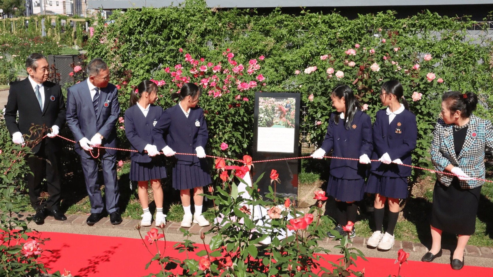 世界バラ会議福山大会メモリアルイベント R7/11/3 令和7年11月3日(月・祝)、ばら公園にて、世界バラ会議福山大会を振り返るメモリアルイベントが開催されました。記念イベントでは関係者が会議の成功を振り返りました。世界バラ会議最終日に「記念ばら」に選出されたフランスの育種会社など、新品種コンテストの受賞者が表彰されました。また、プリンセス・ノブコお手植え記念碑をお披露目するほか、ワークショップやスタンプラリー、記念の植樹など楽しい催しが盛りだくさんでした。