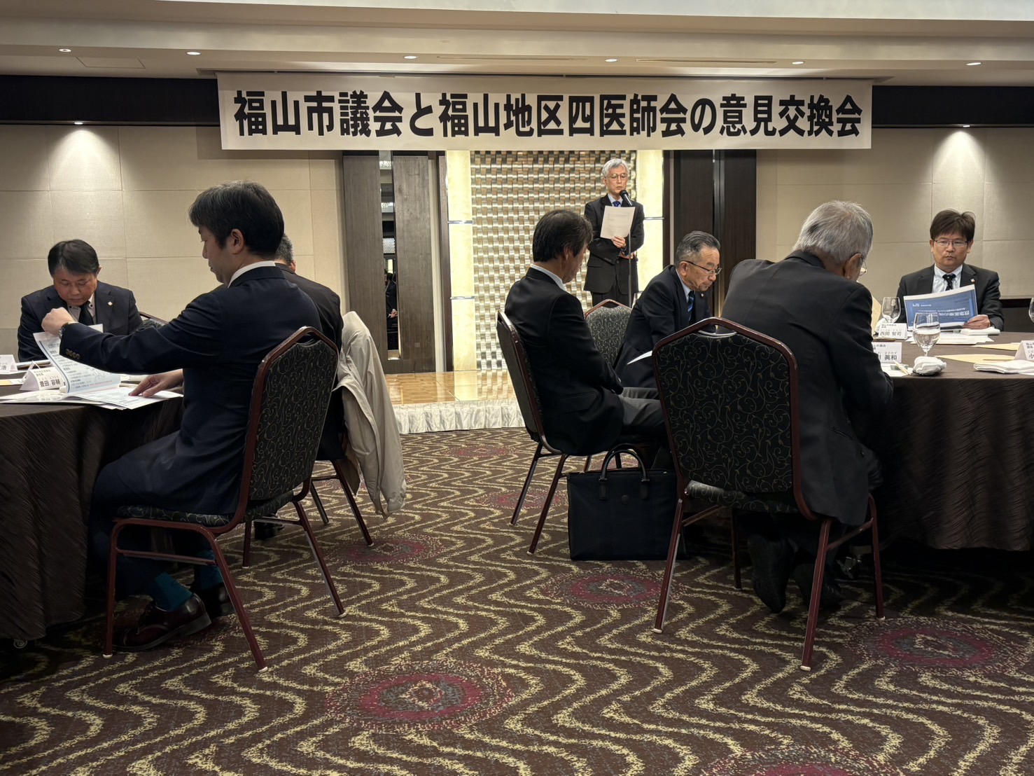 令和7年度 福山市議会と福山地区四医師会の意見交換会 R7/12/18 令和7年12月18日(木)、今年度も福山ニューキャッスルホテルにて、『福山市議会と福山地区四医師会の意見交換会』が開催され、出席しました。医師会の先生方から医療現場での生の声を聞かせて頂くことが出来て、とても有意義な時間を過ごせました(*^^*)。