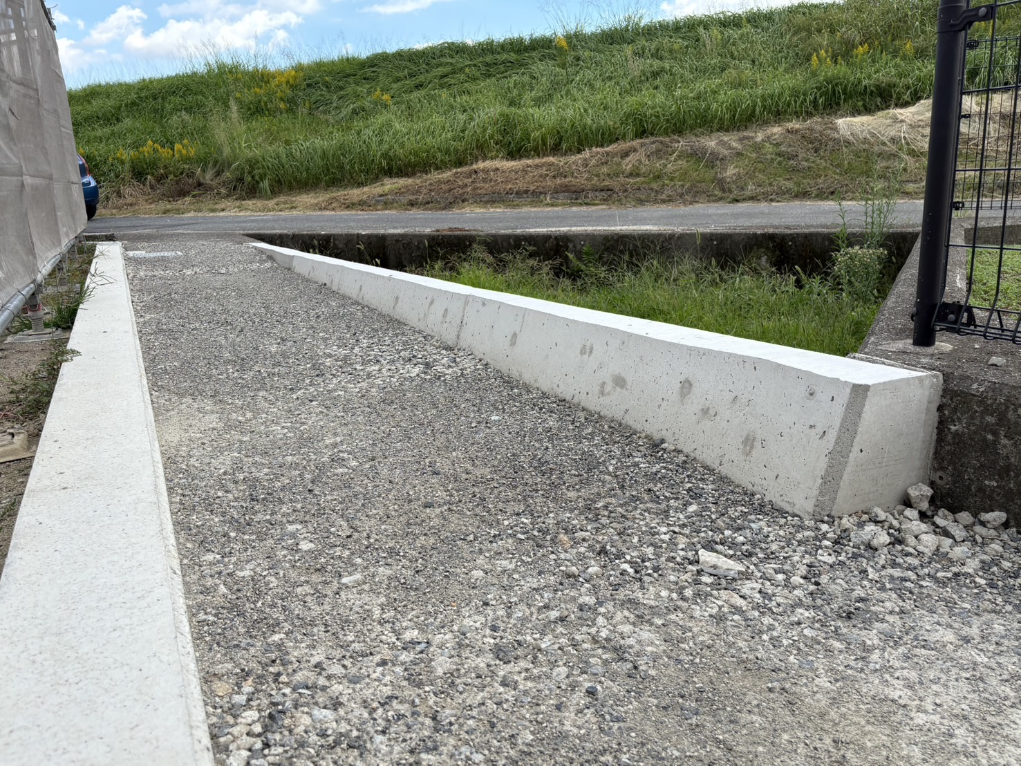 御幸学区 下組地区の里道整備R7/10/16 令和7年10月16日(木)、地域の皆さまよりご要望をいただいていた御幸学区 下組地区の里道整備を取り組みました。雨が降ると、雨水による溜水で歩行困難となるため、改善策として、擁壁をつくりました(*^_^*)。