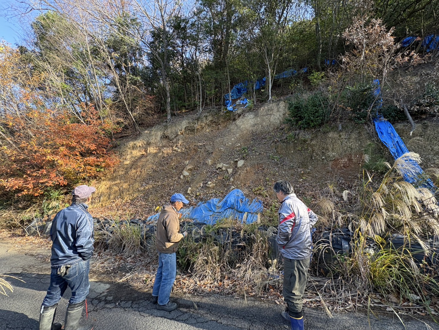 令和7年12月16日(火)、地域の皆さまより、泉学区 草木地区の急斜面について落石防止のためのブルーシートが経年劣化により損傷しており、修繕のご要望をいただき、現地を確認しました。改善に向け、早急に対応して参ります(#^.^#)。